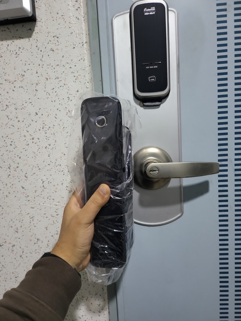 어제 저녁 8시 도어락 설치작업 잘 끝내고