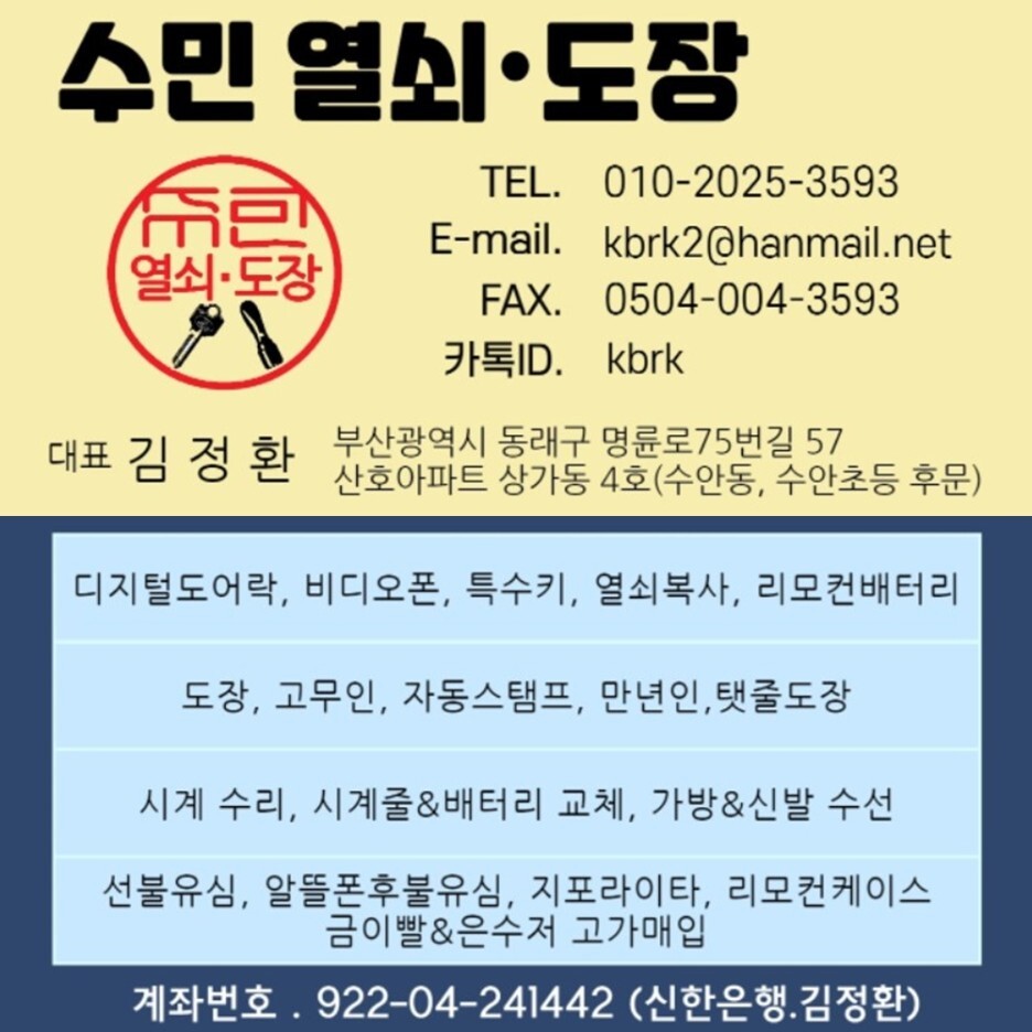 | 제 새매장 '전국열쇠 롯데마트 화명점(구 수민열쇠도장)' 인테리어와 취급품목 리뷰 (0) | 2022.12.21 |