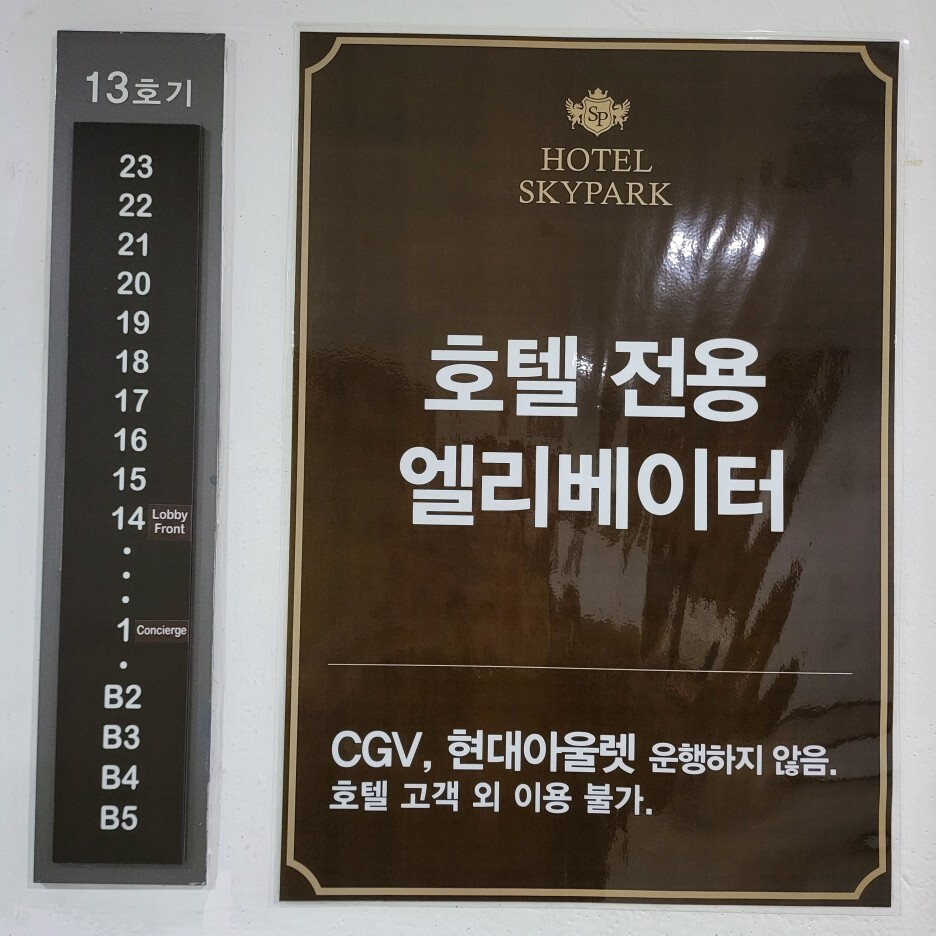 다른 엘리베이터를 타시면 호텔 쪽으로