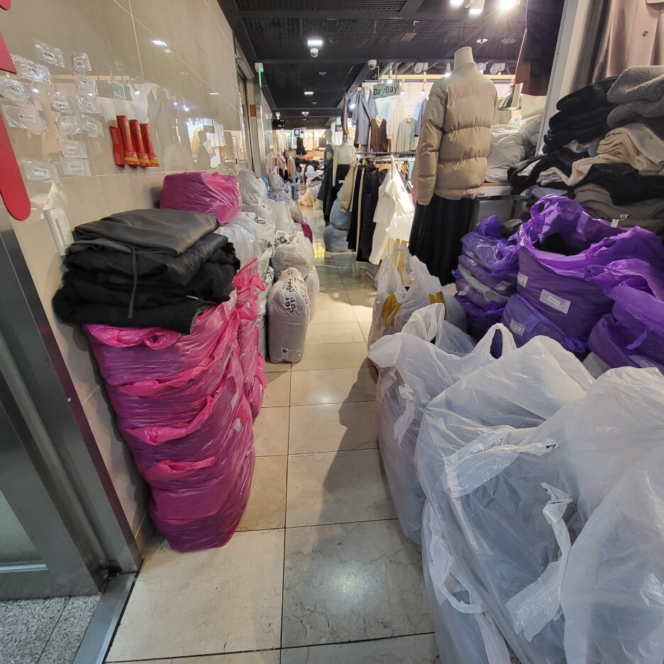 건물 밖에 나와보면 인도는 팔려나갈 옷들로